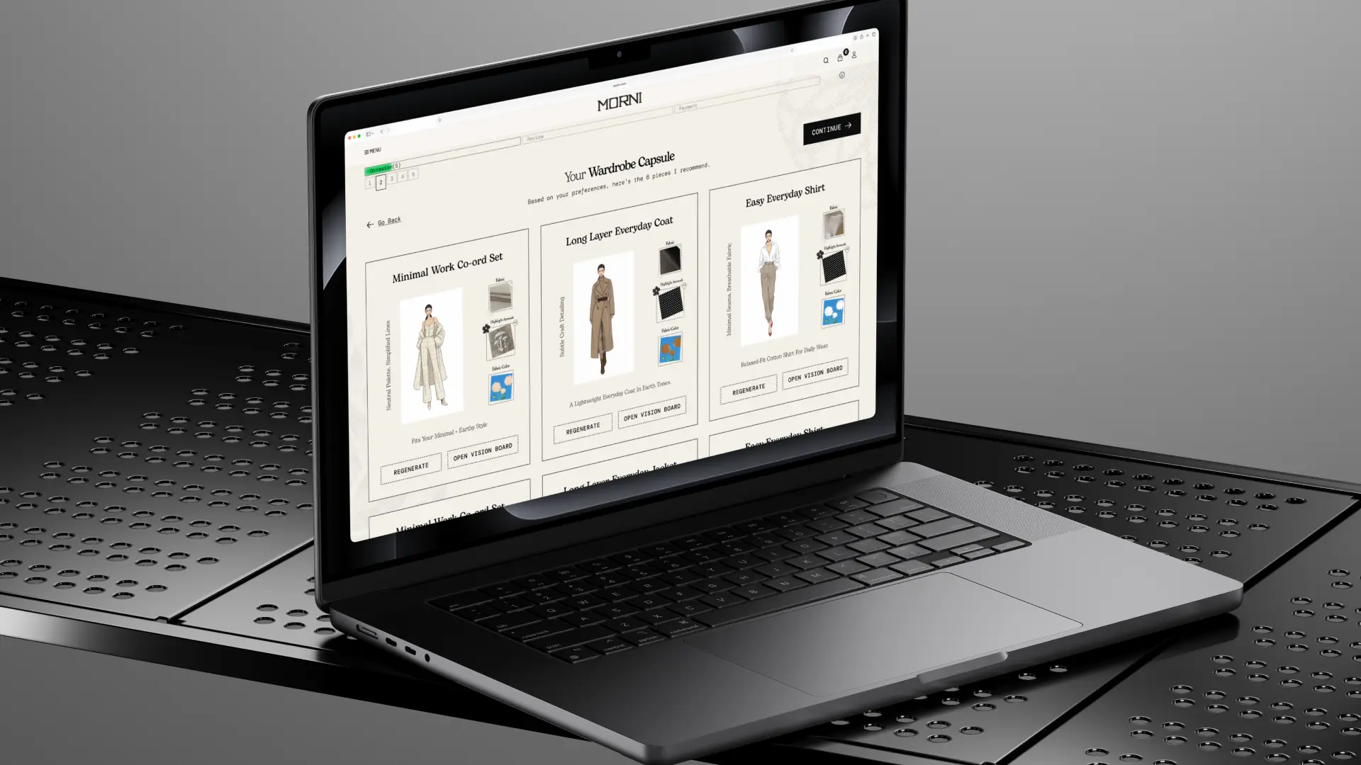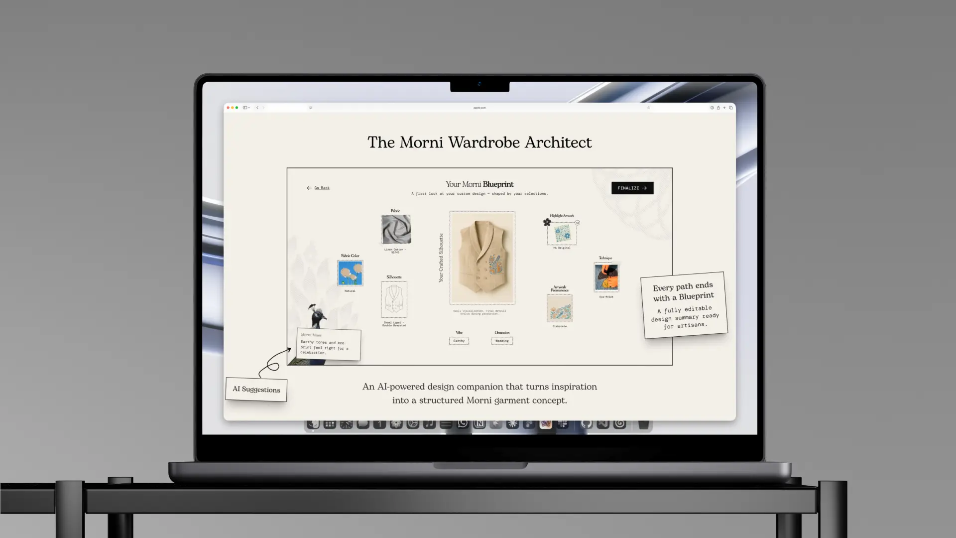 Designed a visual-first AI experience that generates personalized wardrobe capsules and interactive vision boards, reducing decision fatigue in custom clothing design.